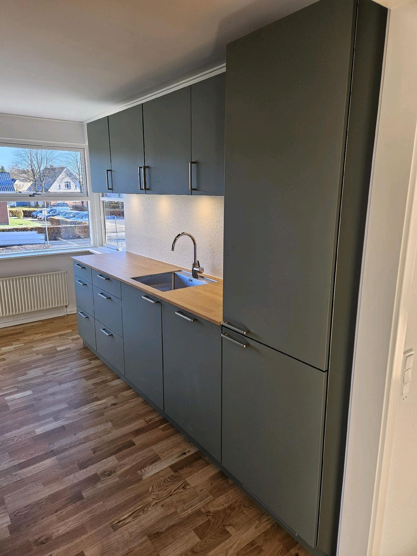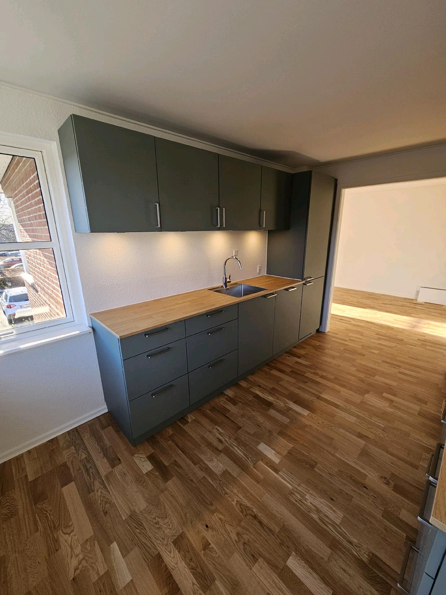 Demontering af et gamle køkken. montering af nyt køkken fra Kvik Svendborg, nye gulve, maling af hele lejligheden samt nyt El og vvs arbejde fra gode samarbejdspartnere