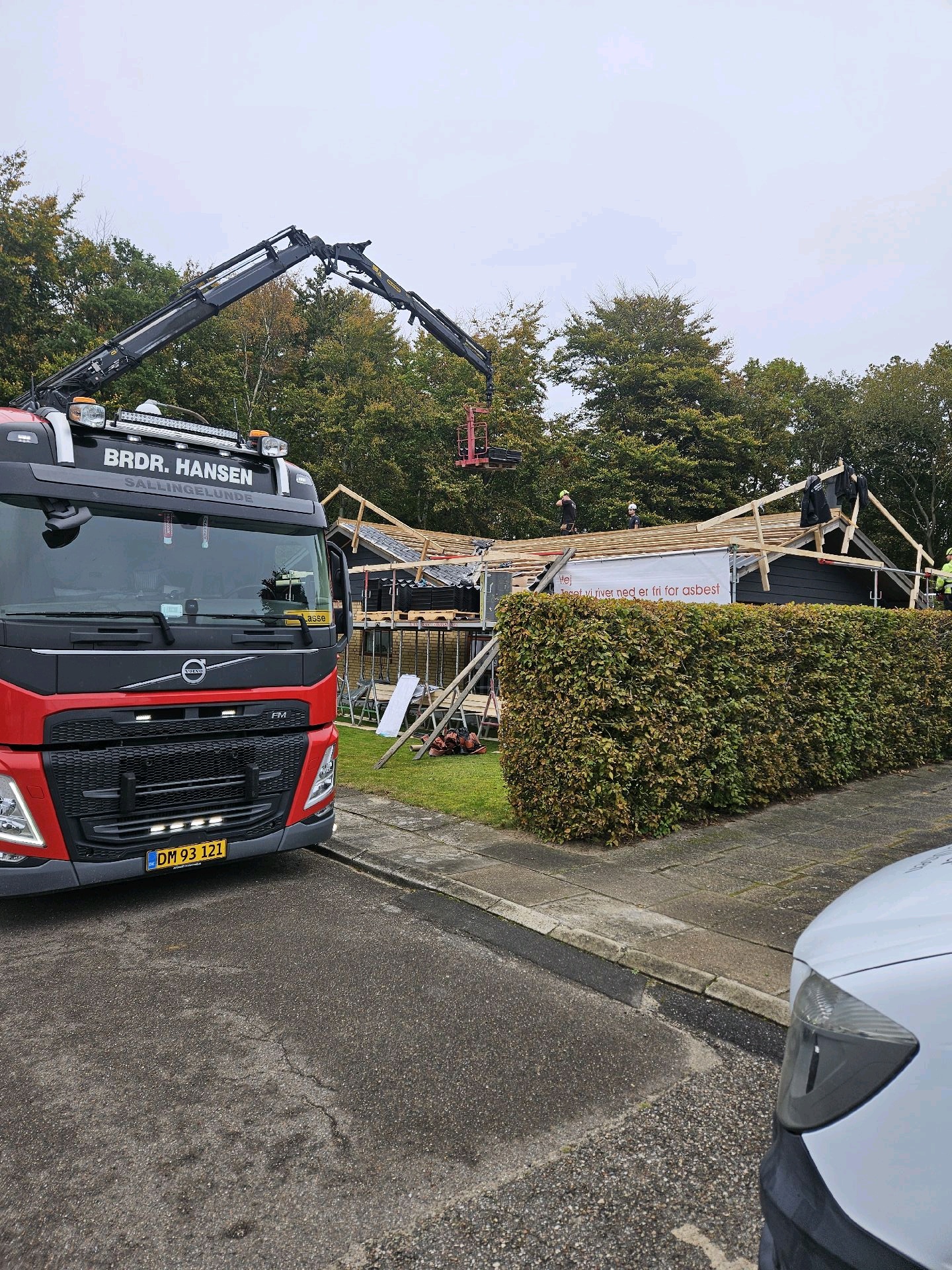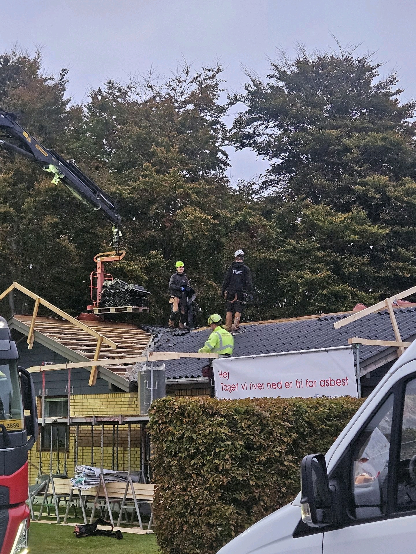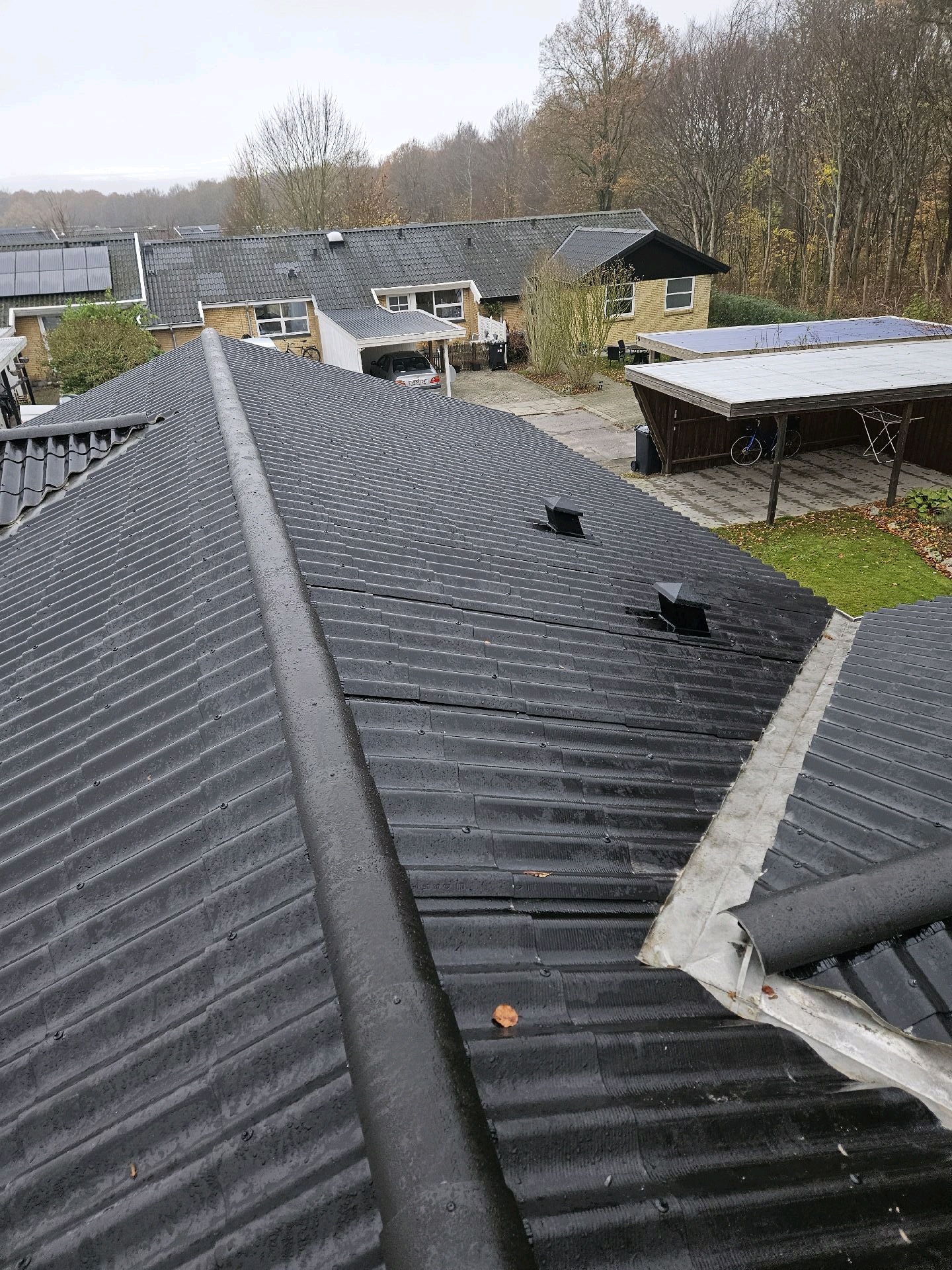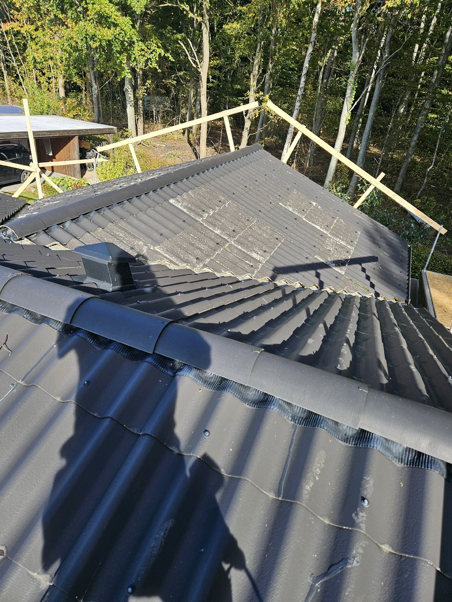 udskiftning af tag 7. december 2025 Her udskiftning af et tagplade tag, som der ikke er asbest i. så alt er efter reglerne.. montering af ny stern og vindskede i eternit, for og holde det vedligeholdelsefrit. så man ikke skal male mere. Felt