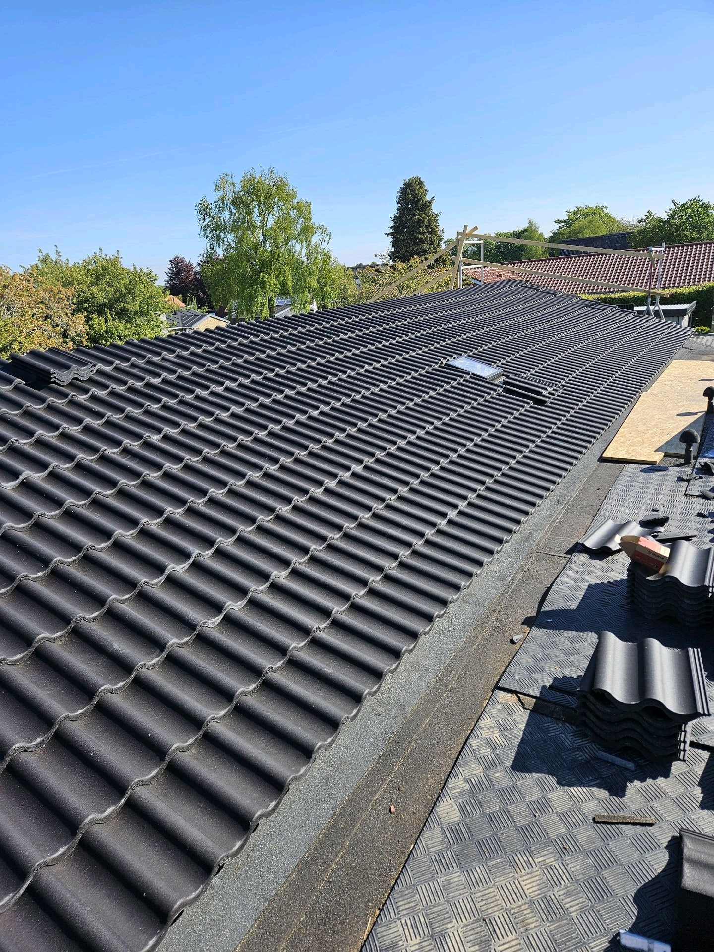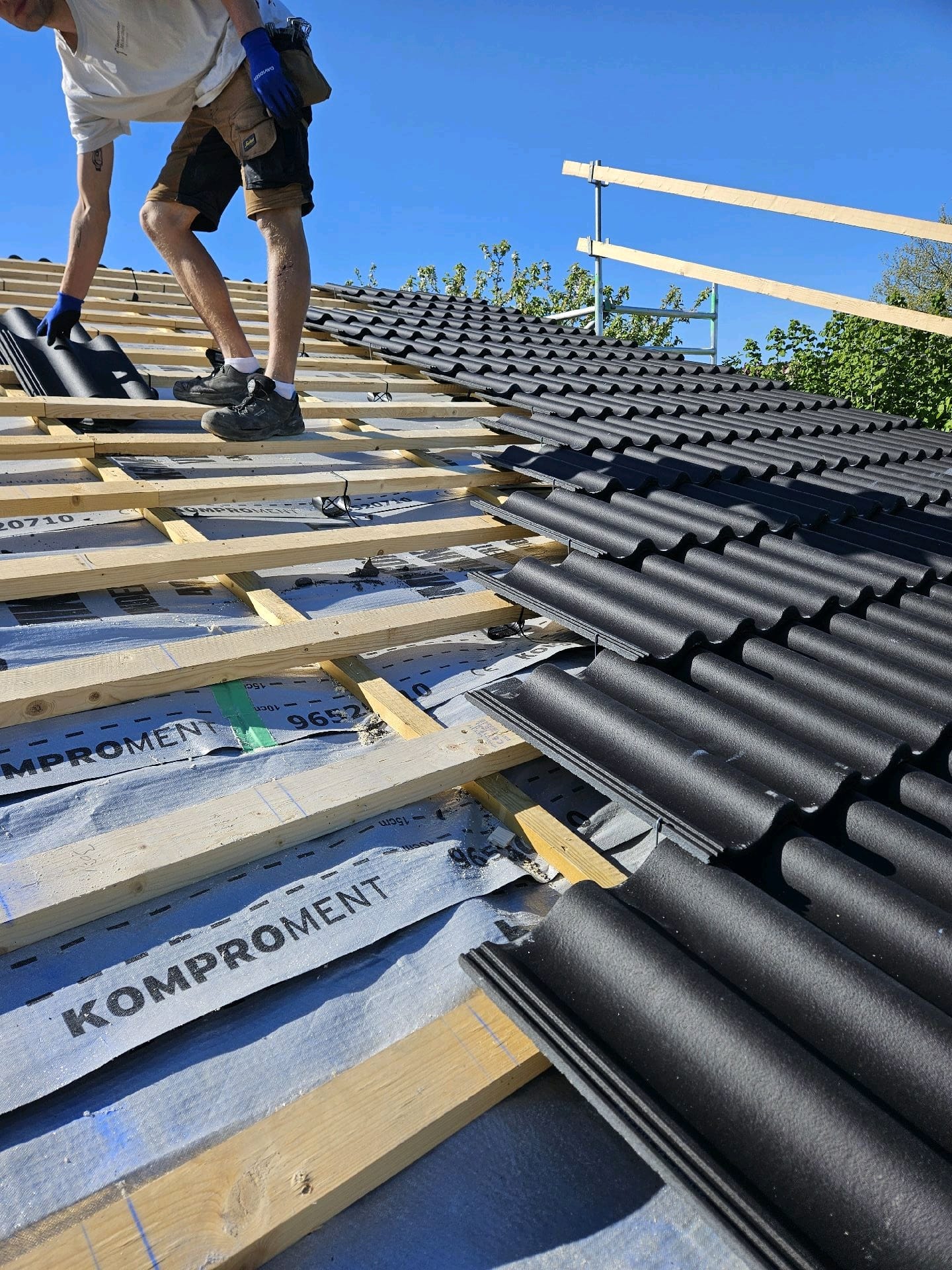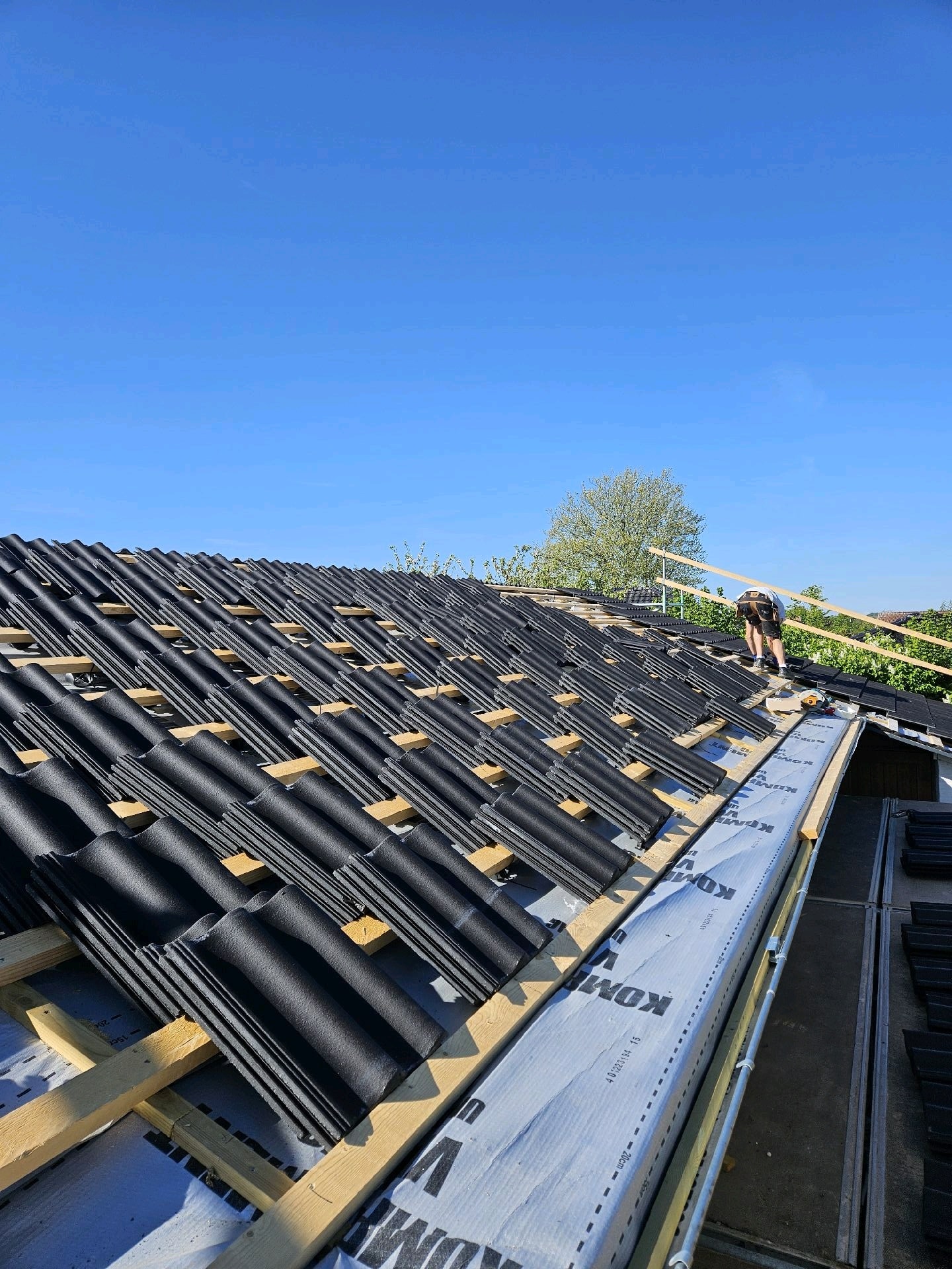 udskiftning af tag I Ringe. 6. juni 2025 her er opgaven, hvor undertaget var så dårligt at det kræver en udskiftning. og montering af nye letvægt tagsten. i farven sort, i stedet for røde. og det sorte passer også bedre til huset.🔨 Felt
