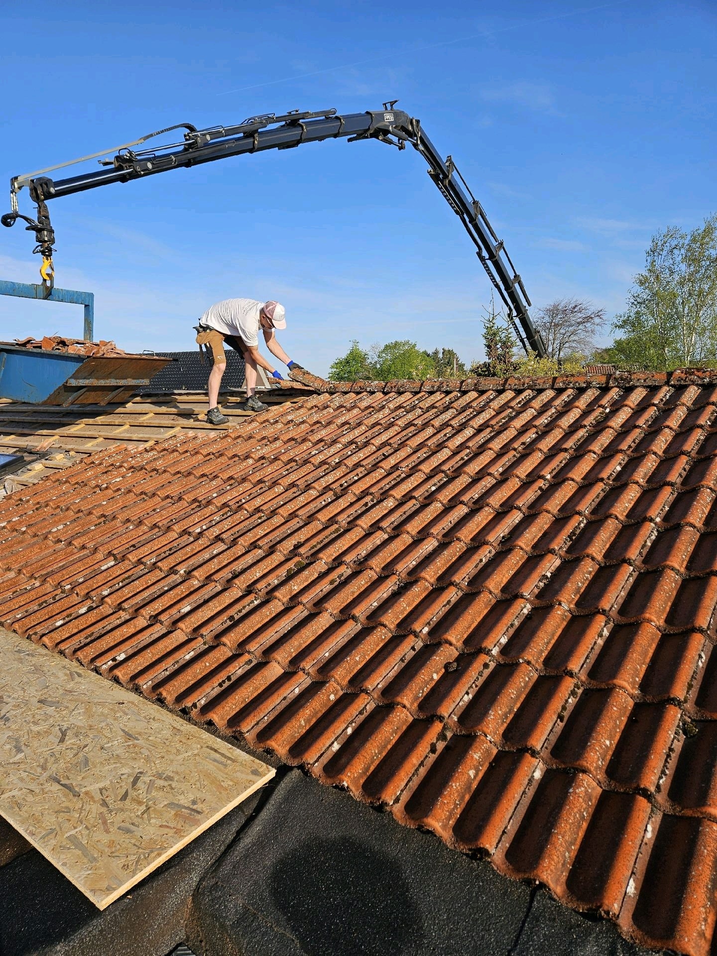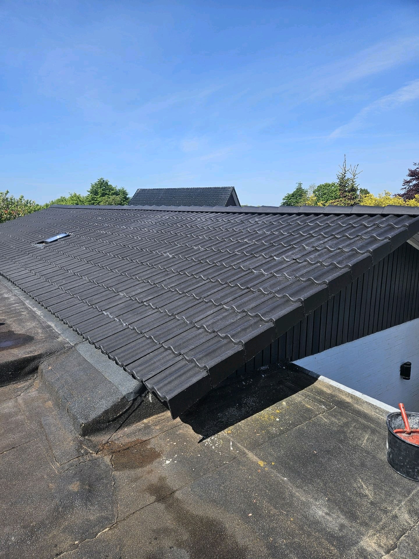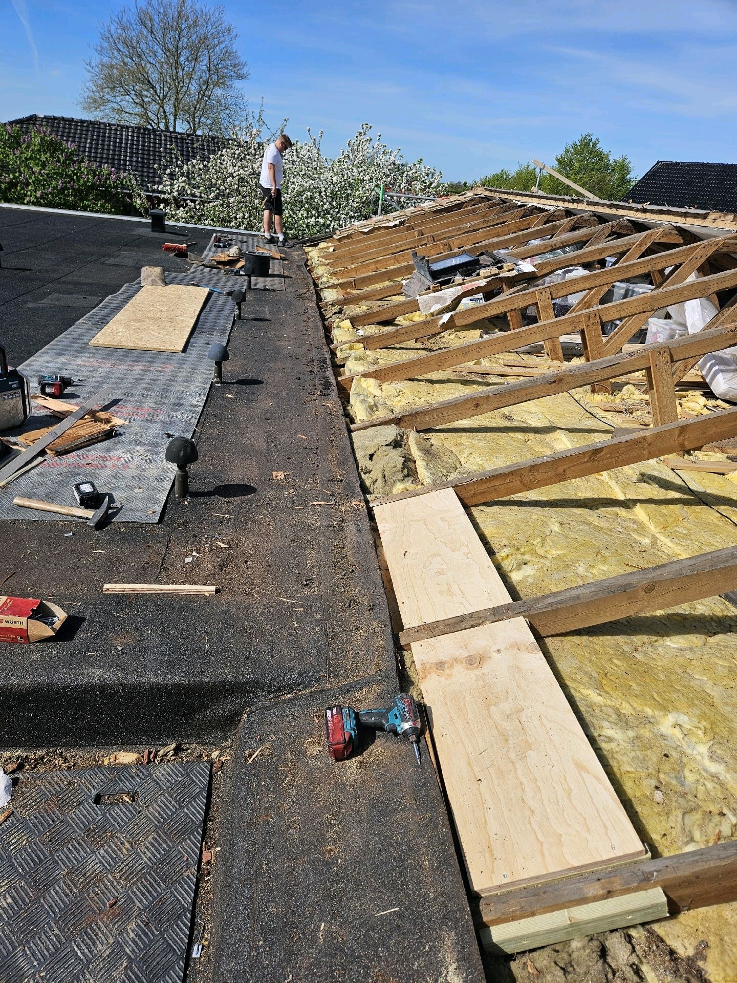 udskiftning af tag I Ringe. 6. juni 2025 her er opgaven, hvor undertaget var så dårligt at det kræver en udskiftning. og montering af nye letvægt tagsten. i farven sort, i stedet for røde. og det sorte passer også bedre til huset.🔨 Felt